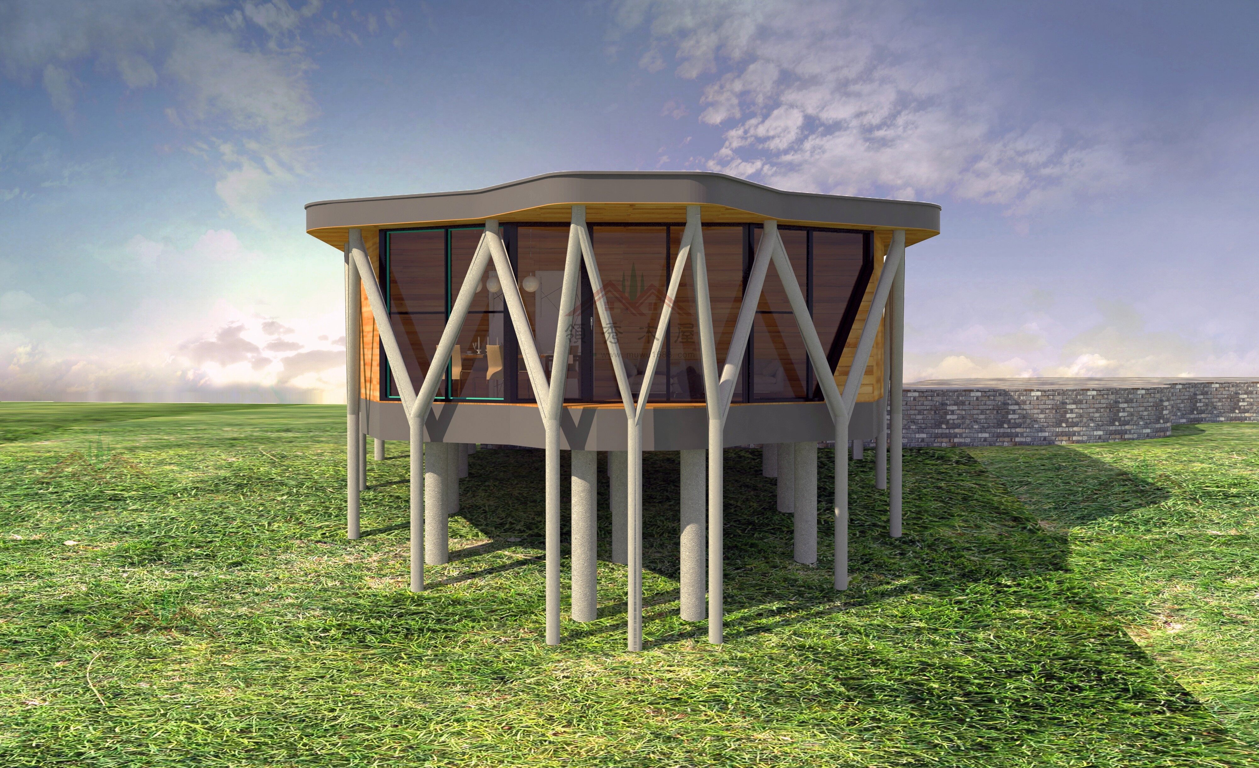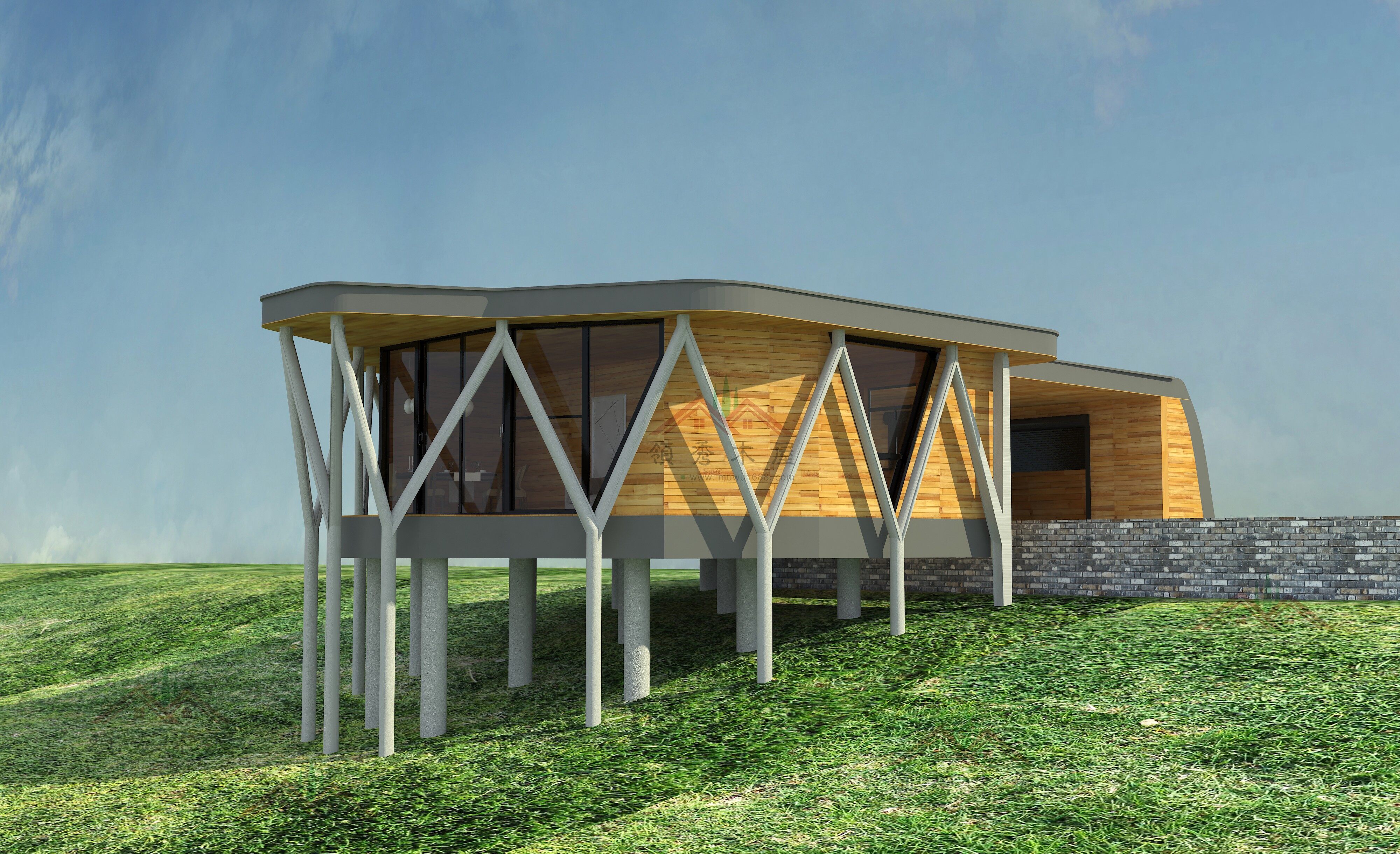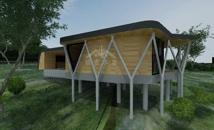 吊腳平頂木別墅特殊款+平面布置圖+效果圖:適合度假酒店、私人會所
