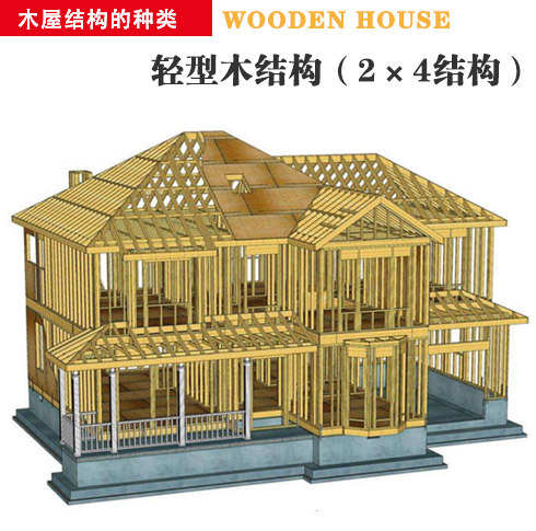 輕型木屋是以框架搭建的建筑,墻體框架主要用3.8cm*8.9cm的SPF材料,中間用保