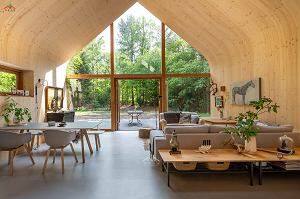 能讓墻體與屋頂可以呈現(xiàn)完美曲線的云杉膠合木制作的三角木屋...