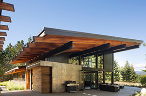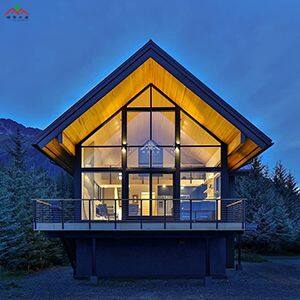 郊外山坡現(xiàn)代風(fēng)格平頂大玻璃落地窗家庭聚會(huì)休閑度假木屋...