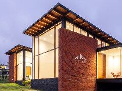 大落地窗紅磚墻體與木材相結(jié)合的現(xiàn)代風格單層度假木屋...