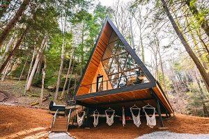 一棟在森林里的特色民宿三角形度假木屋可以滿足一家人的開銷...