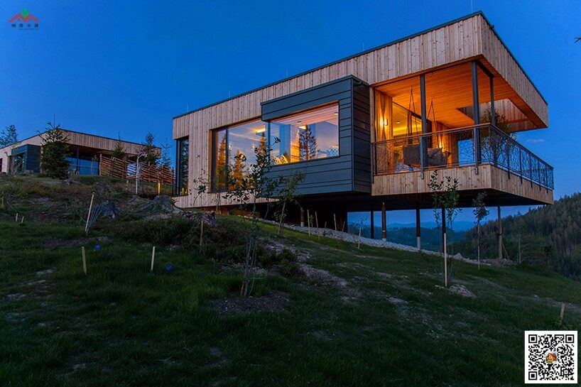現(xiàn)代簡約風格木屋,方形平頂木屋別墅,山坡吊腳木屋...