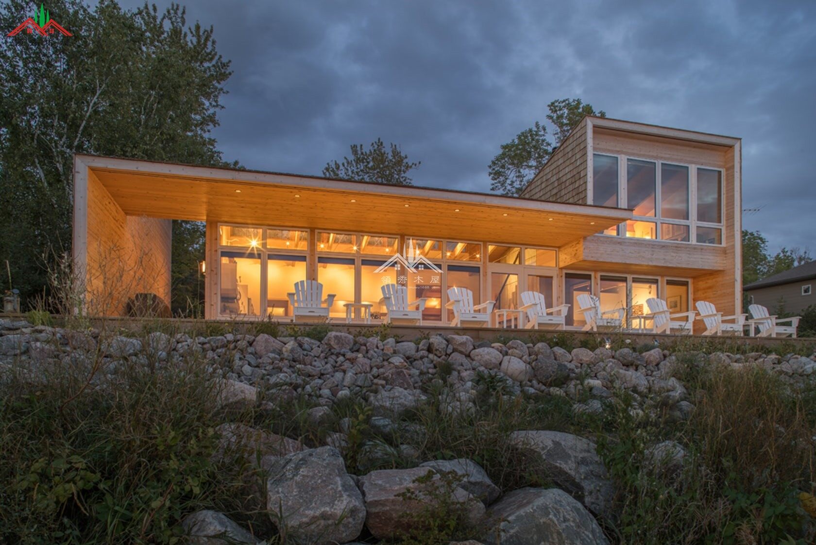 現(xiàn)代風格平頂大落地窗吊腳度假木屋...